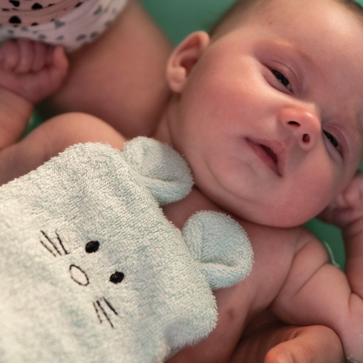 Mănușa de spălat din bambus se dovedește perfectă încă de la prima baie a bebelușului tău.