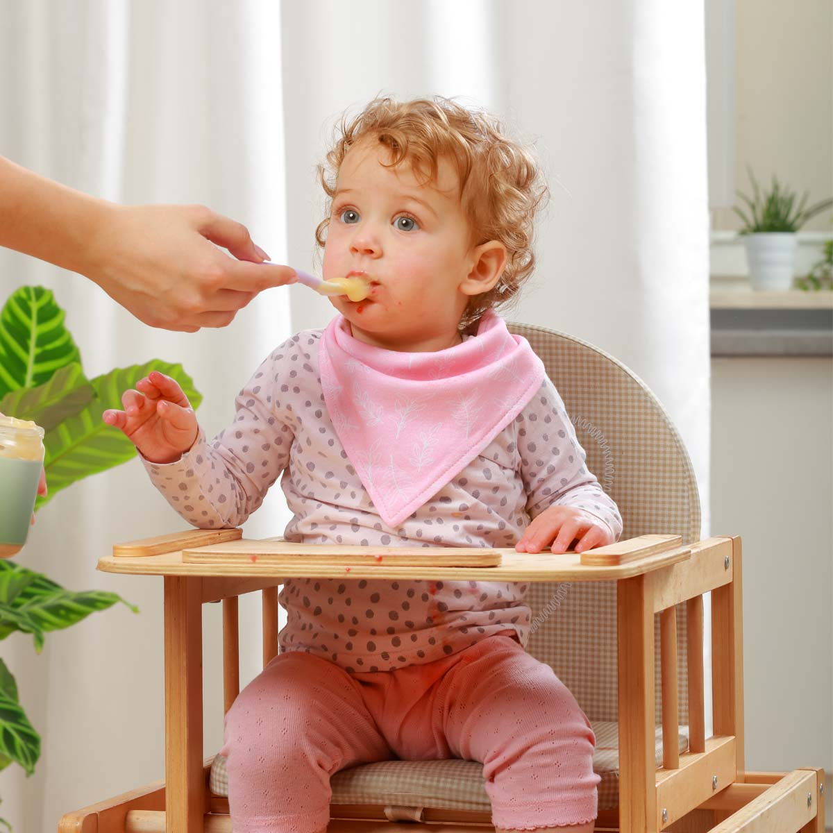 Este realizata din bumbac 100% cu doua straturi, astfel incat se infasoara cu usurinta in jurul gatului bebelusului.