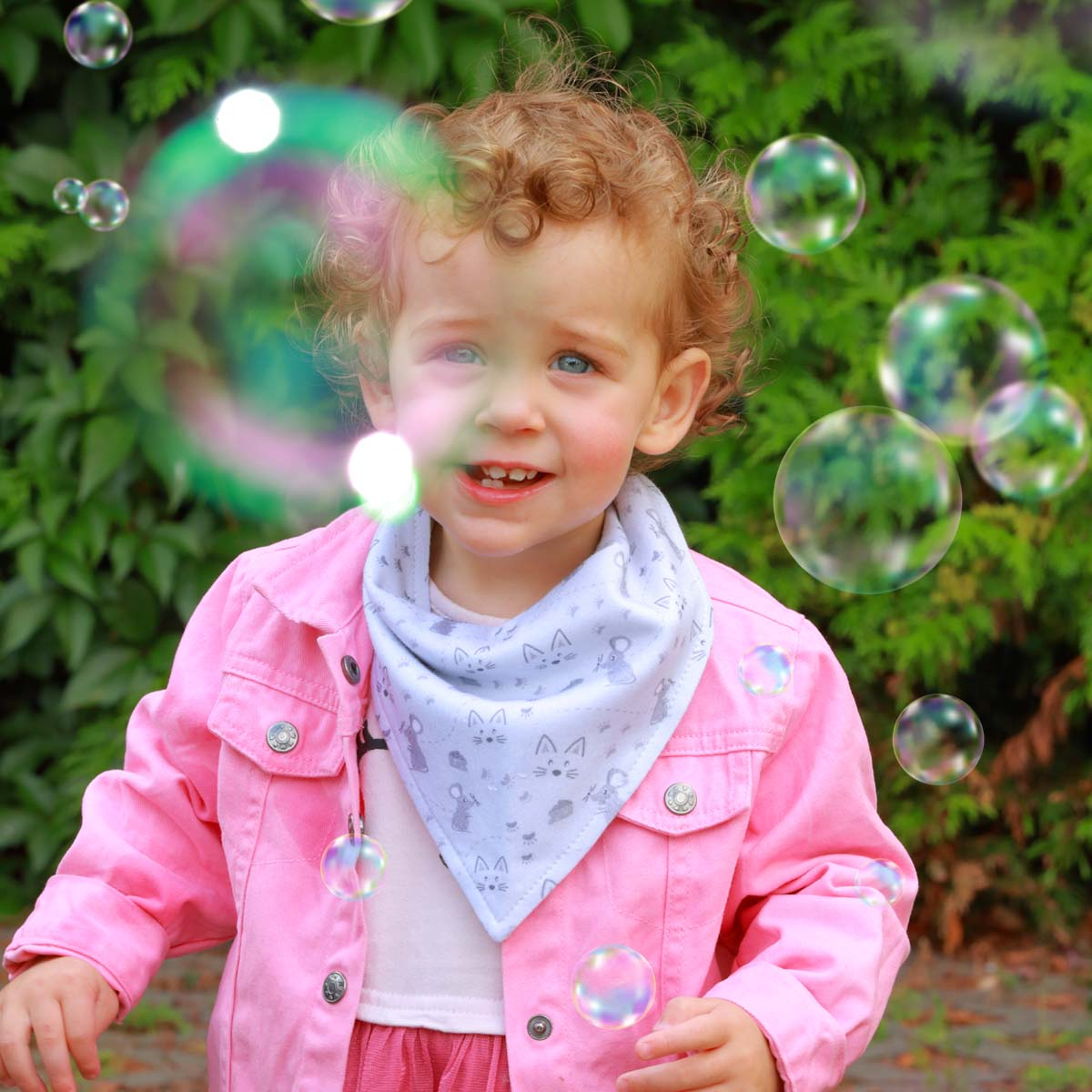 Datorită capselor, puteți adapta barbita eșarfă la dimensiunea gâtului bebelușului dumneavoastră. Baticul de gât este potrivit pentru bebeluși și copii și „crește” odată cu ei.