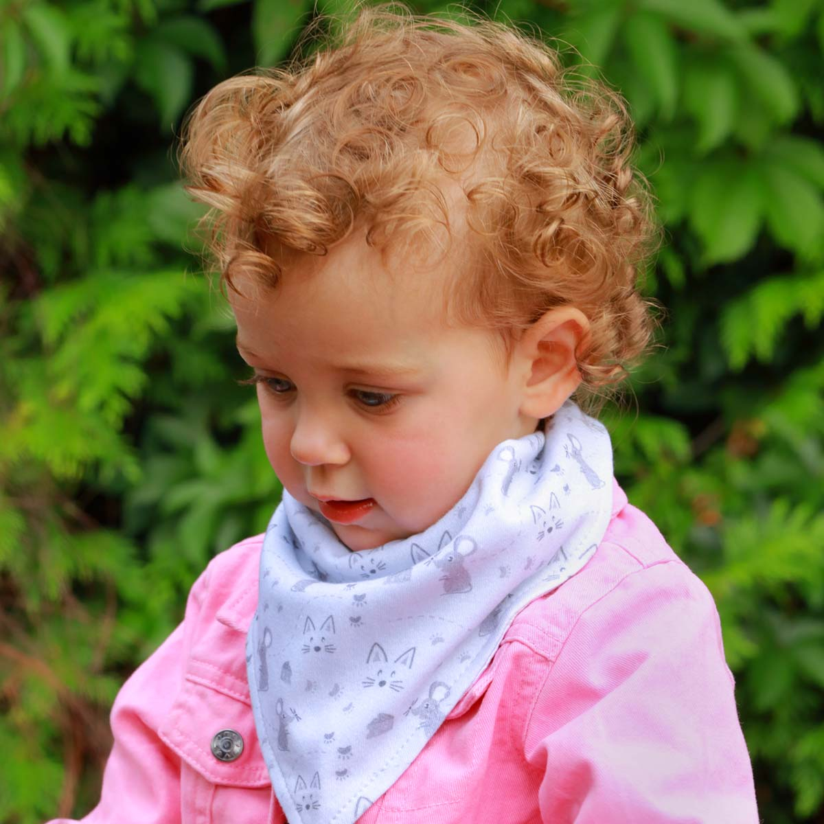 Este realizata din bumbac 100% cu doua straturi, astfel incat se infasoara cu usurinta in jurul gatului bebelusului.