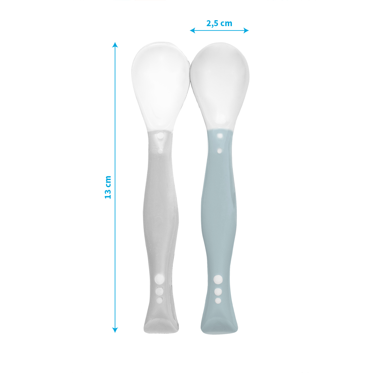 Set 2 lingurite flexibile Babyono gri si albastru 1066/04