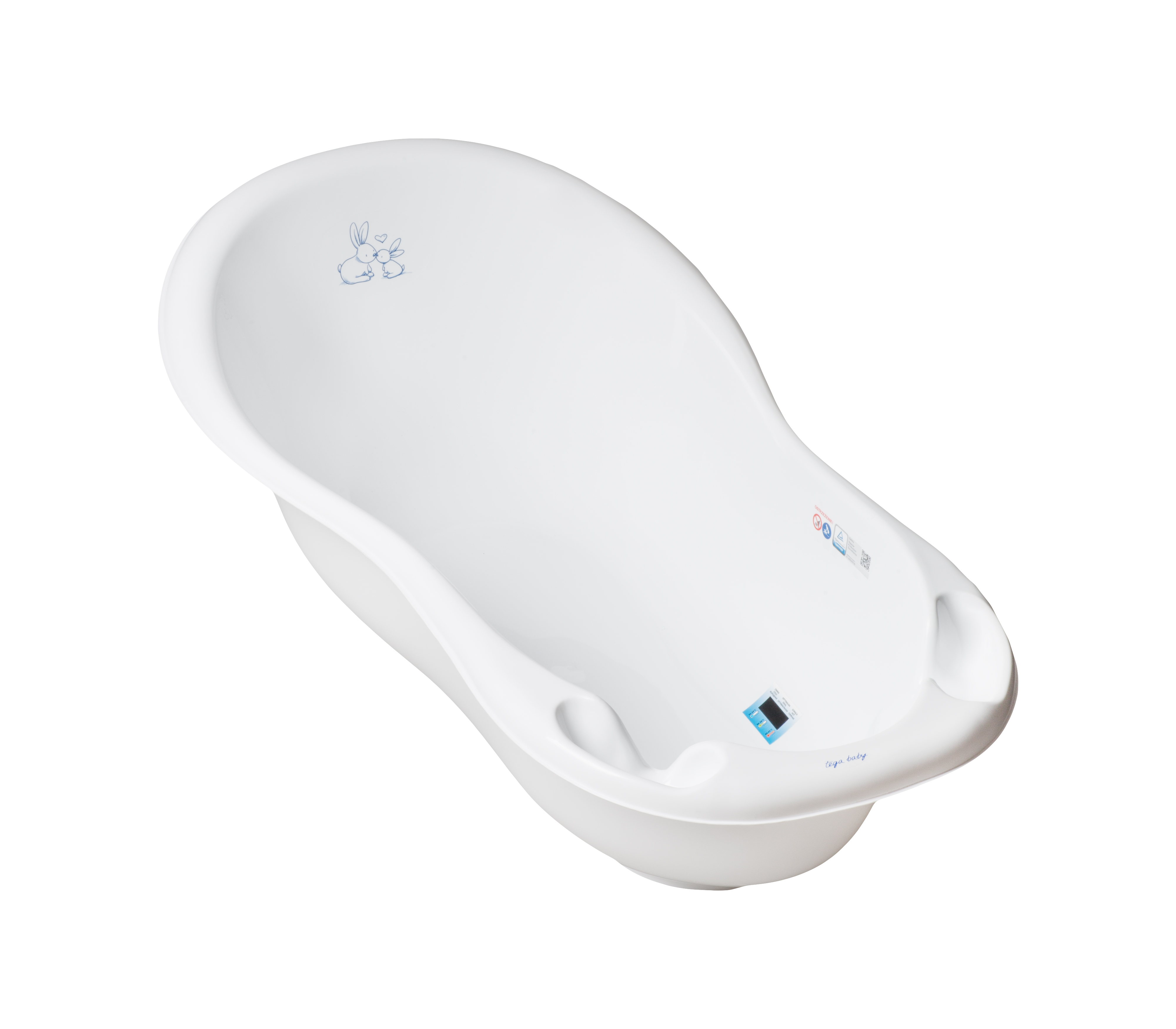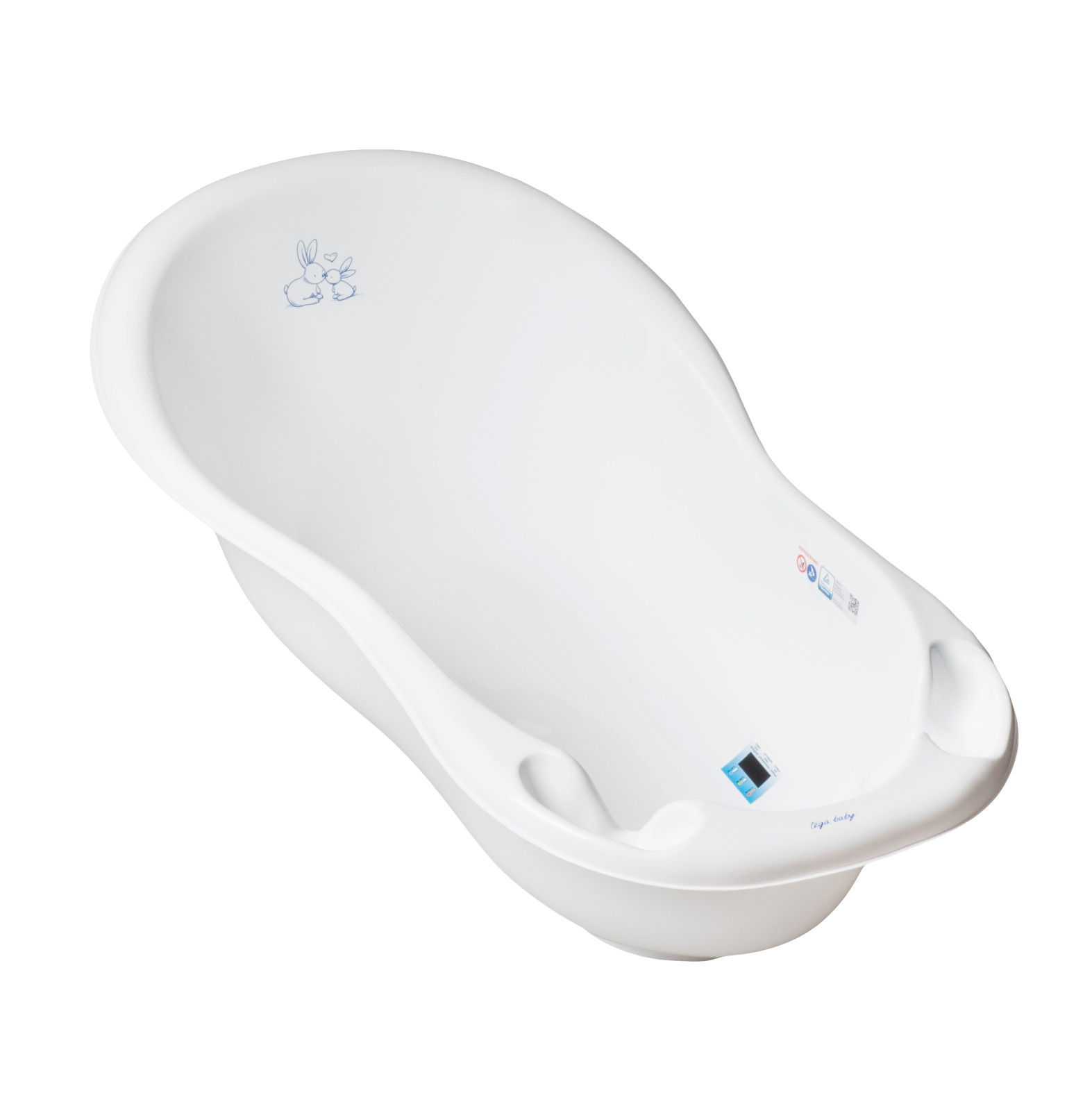Cadita ergonomica pentru bebelusi Tega Baby cu senzor de temperatura si dop pentru scurgere, colectia Micutii Iepurasi, 102 cm, alb