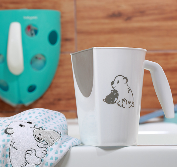 Datorită mânerului ergonomic, puteți ține cu ușurință cana de clatit și o puteți mișca liber în timp ce spălați părul bebelușului.
