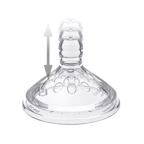 O structură specială și unică a tetinei susține reflexul natural de supt. Varful flexibil se extinde în timpul hrănirii pentru a simula sânul mamei