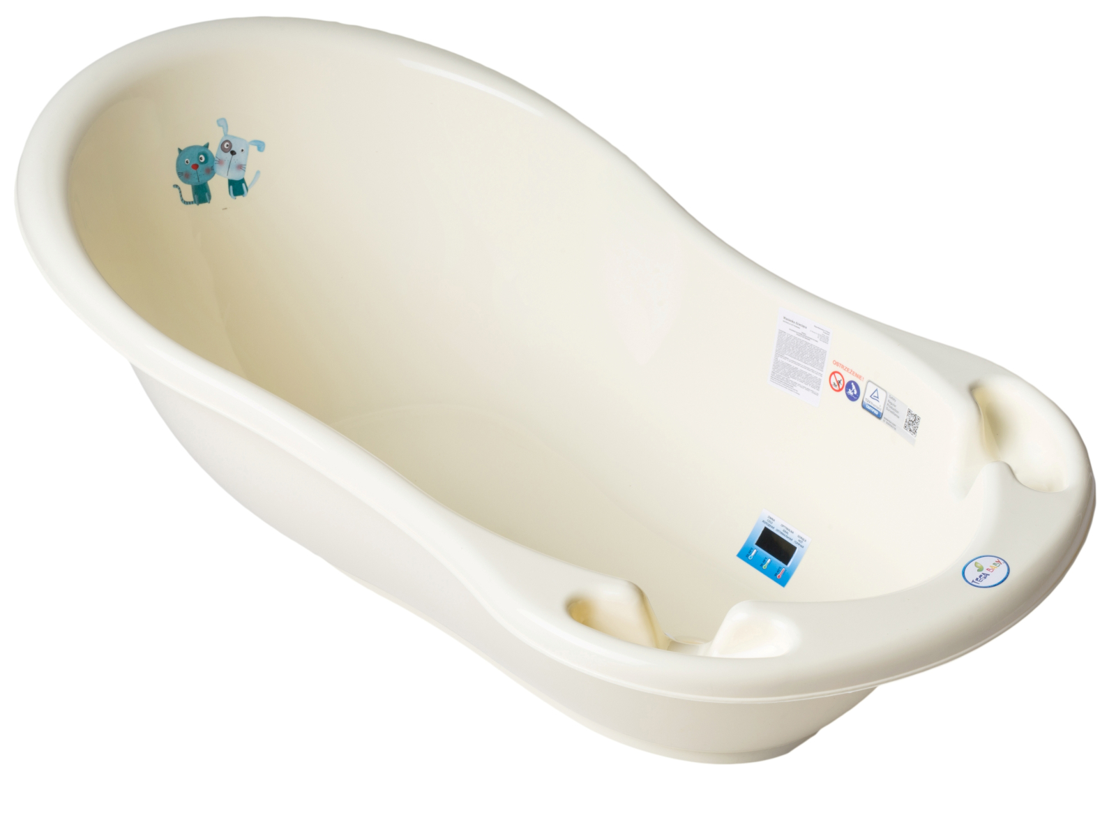 Cadita ergonomica pentru bebelusi Tega Baby cu senzor de temperatura si dop pentru scurgere, colectia Catel&Pisica, 86 cm, galbena