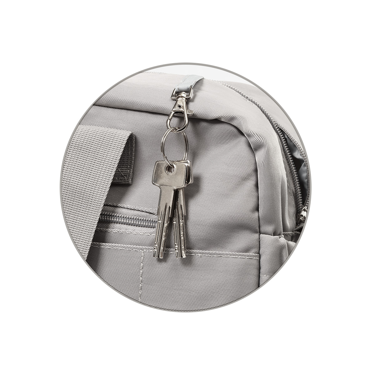Atât în față, cât și în spate se află câte un buzunar sigur cu fermoar, destinat obiectelor minore sau biletelor.