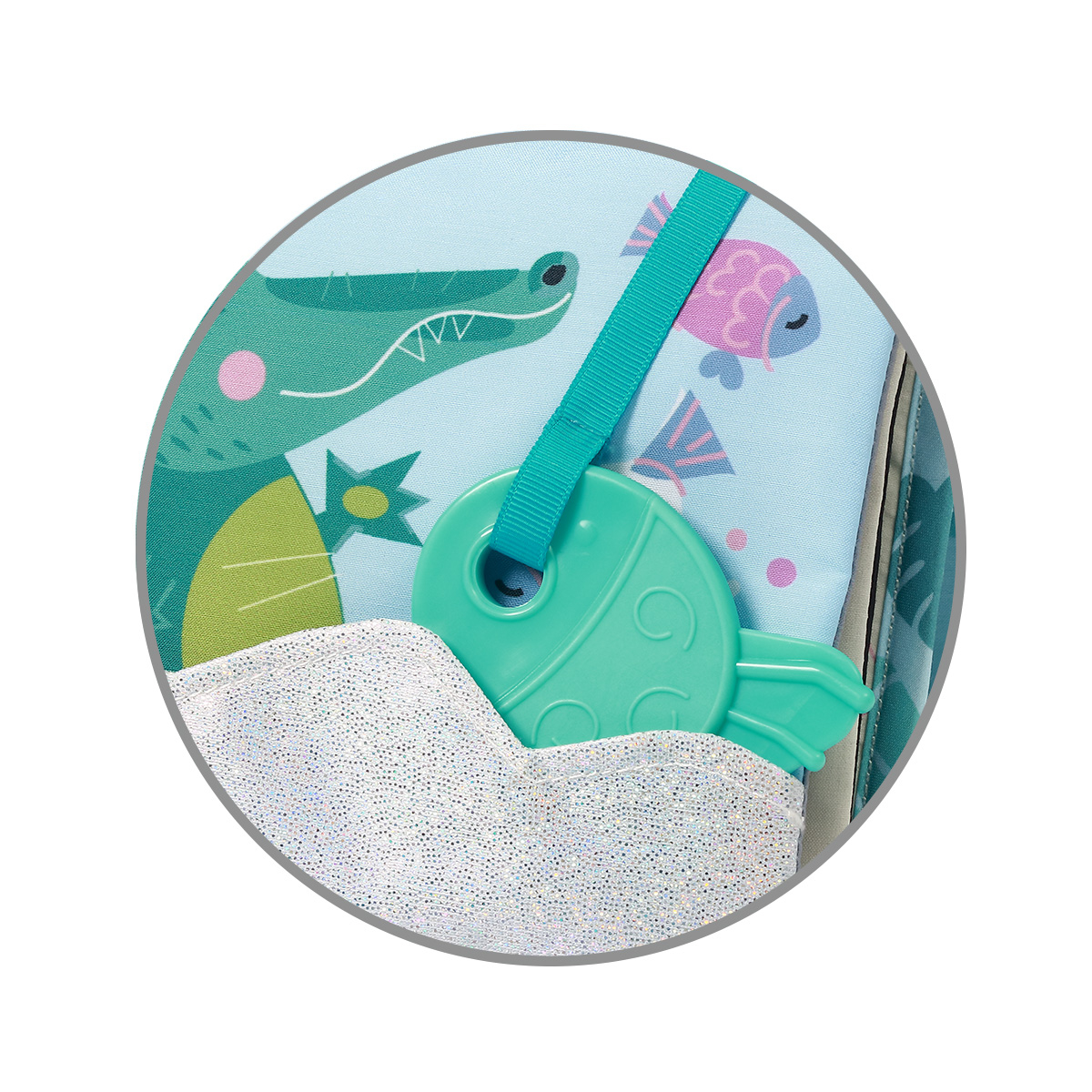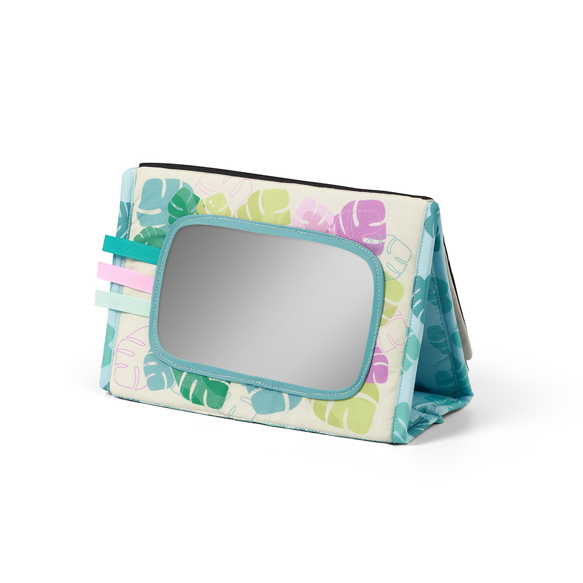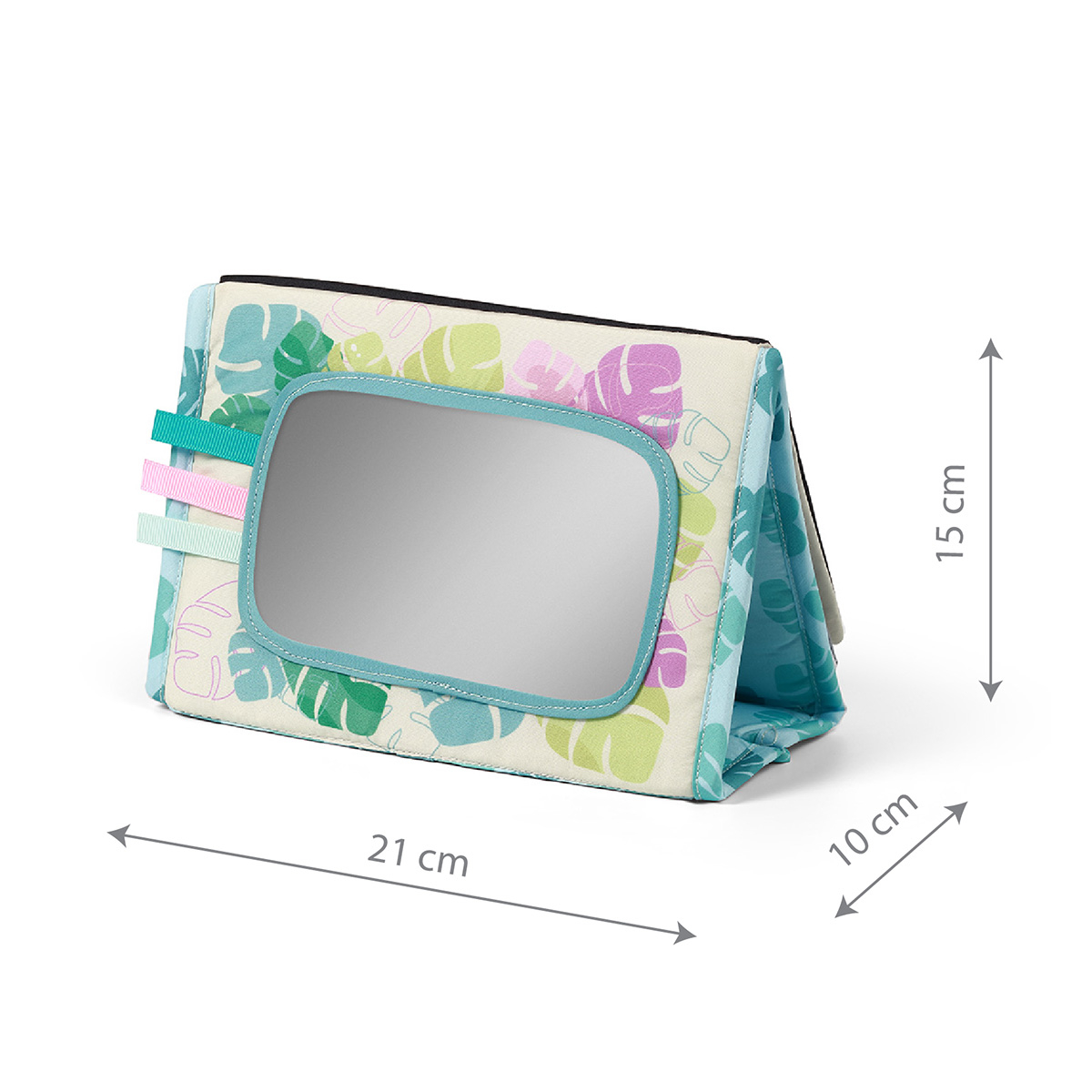 Oglinda mare arata împrejurimile într-un mod nou și încurajeaza copilul sa exploreze lumea. Diversele elemente senzoriale, cum ar fi benzile, inelul gingival, fosnetul si articolele stralucitoare sunt o garantie pentru ore lungi de joc stimulativ. Perfecta pentru micii exploratori.