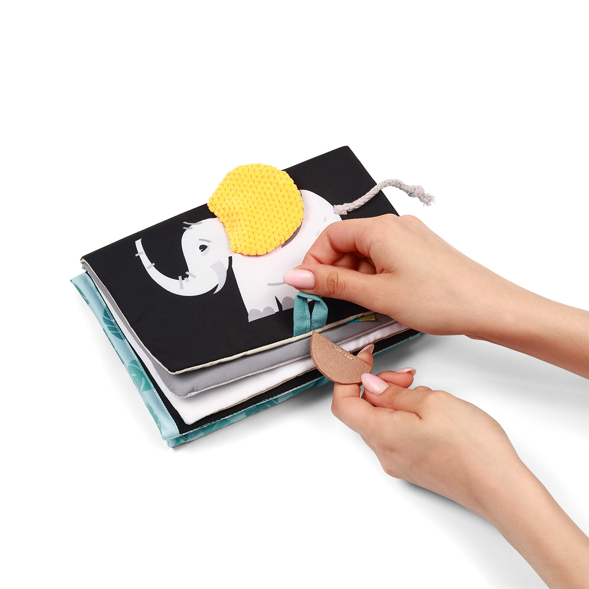Fosnetul paginilor si al pieselor garanteaza efecte sonore interesante si stimuleaza auzul bebelusului.