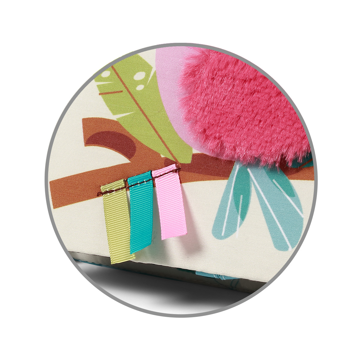 Nodurile si panglicile colorate încurajeaza copilul sa exerseze prinderea.