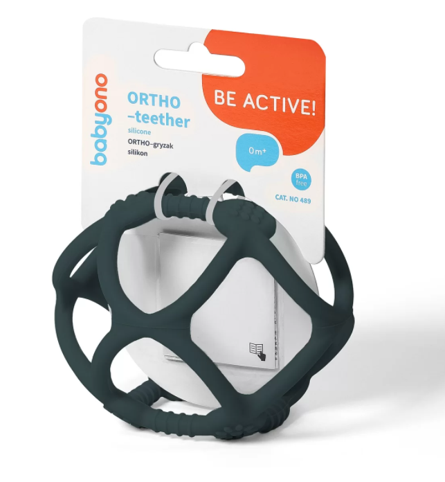 Dispozitiv de dentitie din silicon ultra moale cu structura si forma originale. Este ușor de apucat și ținut în mâinile copilului. Fabricat din silicon - material care nu conține bisfenol A.