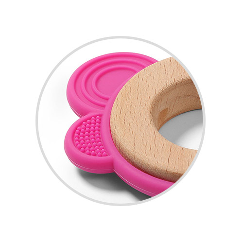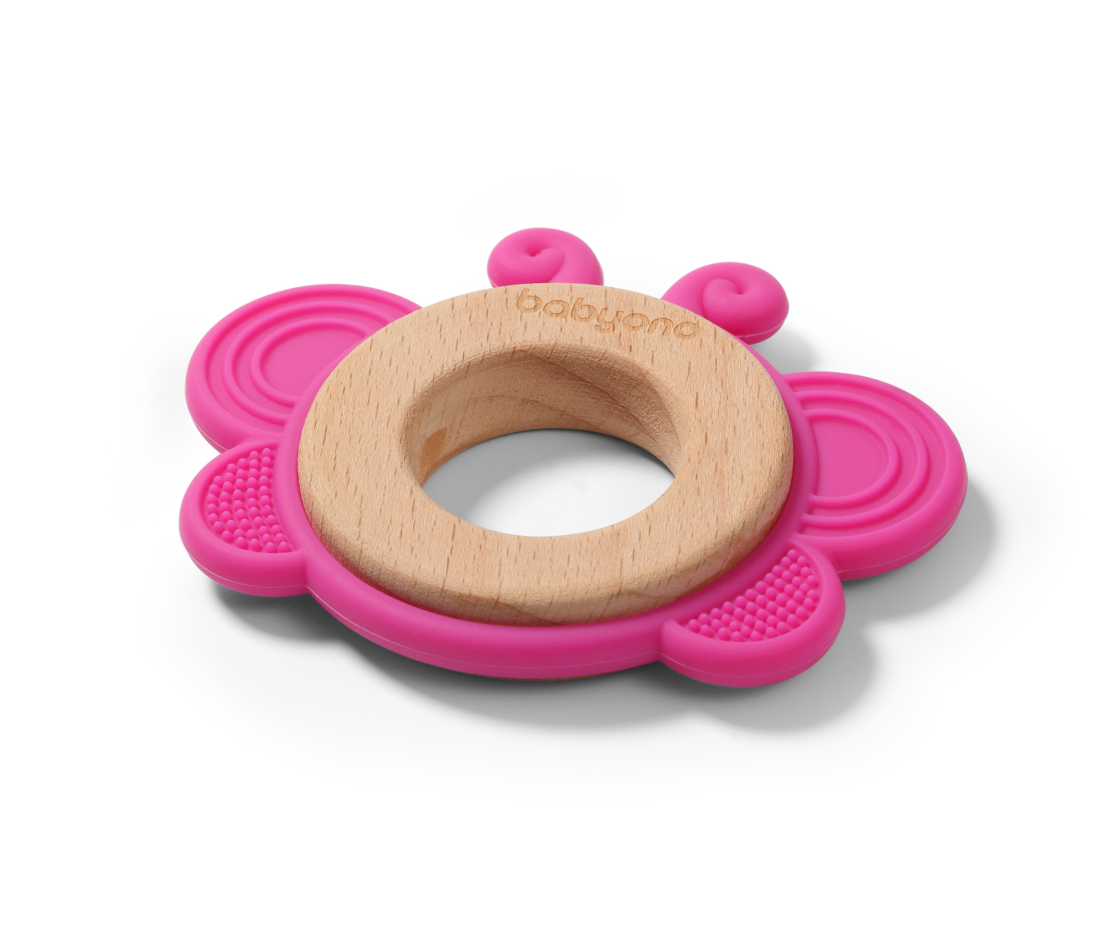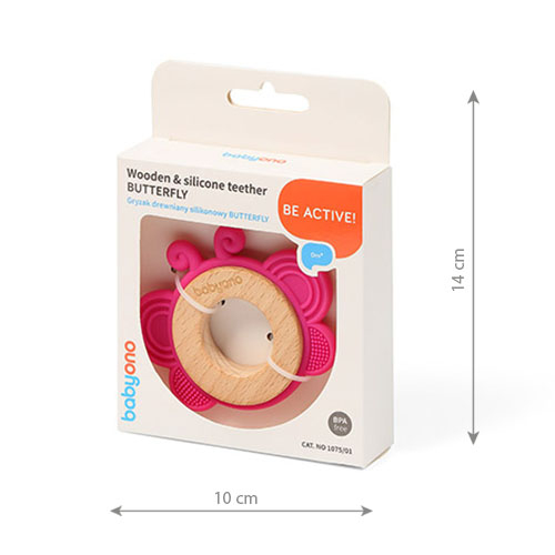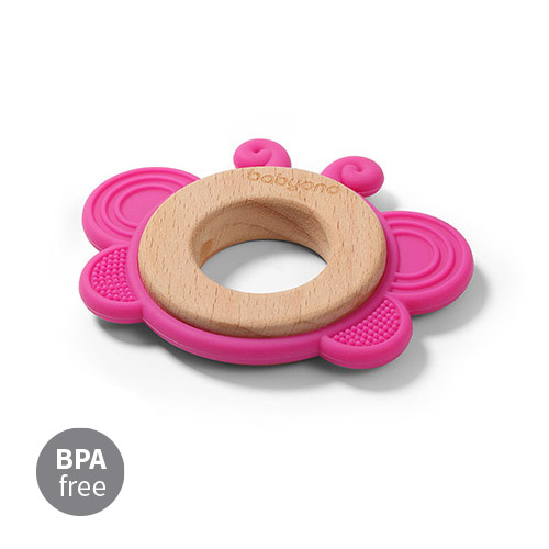 Inel dentitie silicon&lemn Babyono fluture roz 1075/01