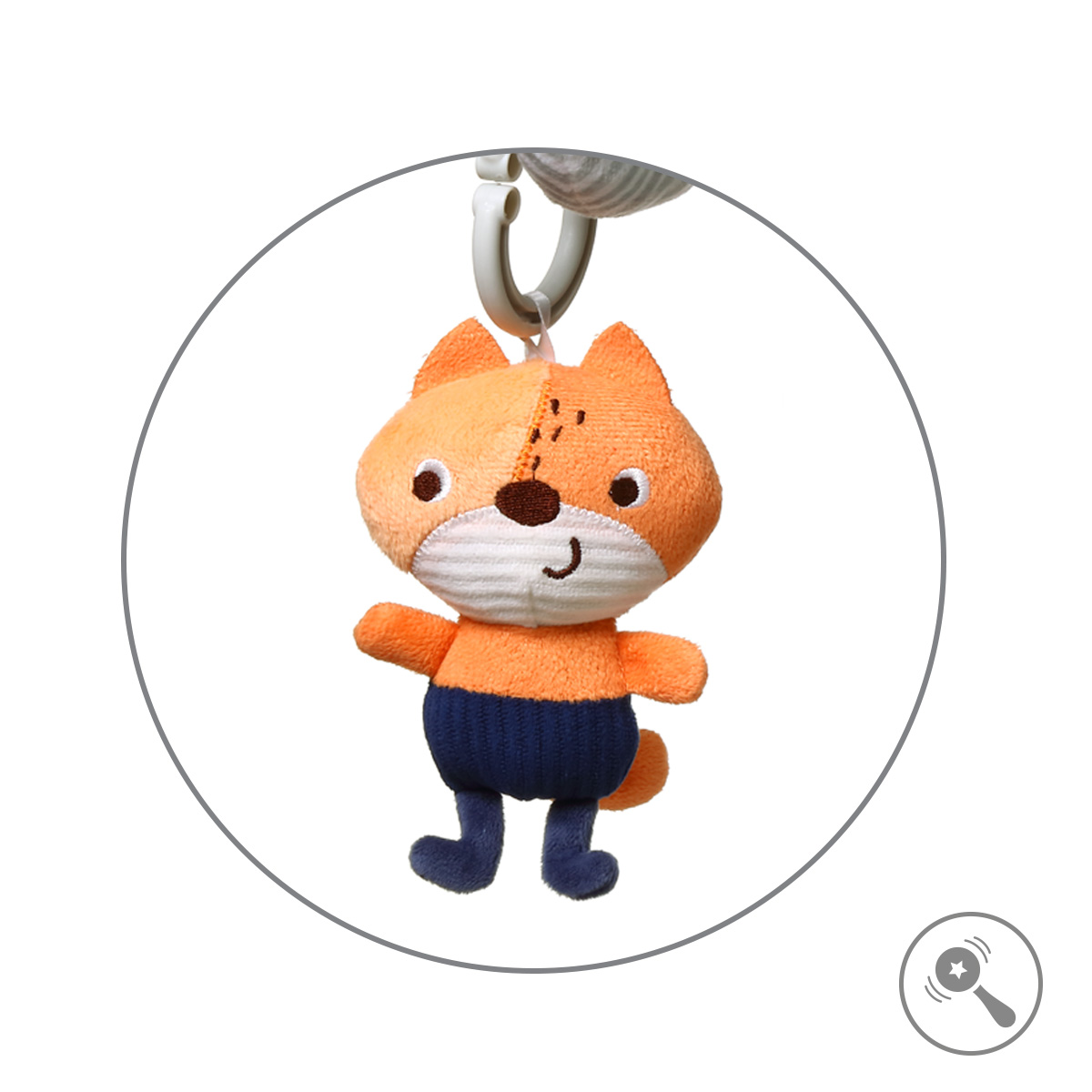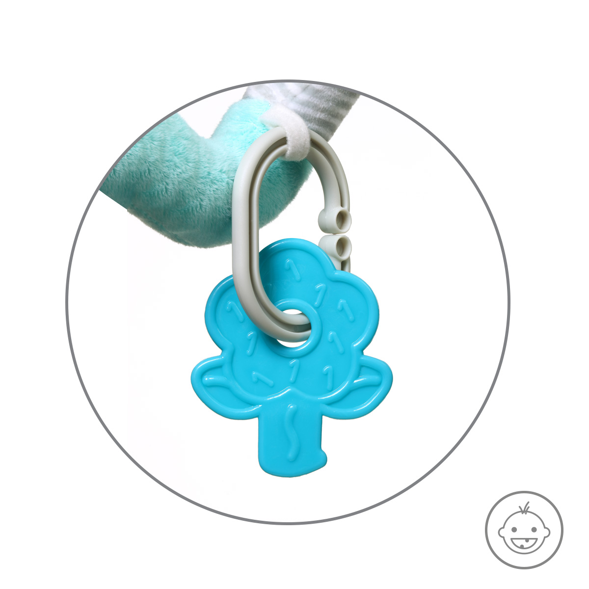 O poți atașa cu ușurință la locul în care poate ajunge copilul tău, de ex. braț pentru scaun pentru copii, sling sau cărucior.