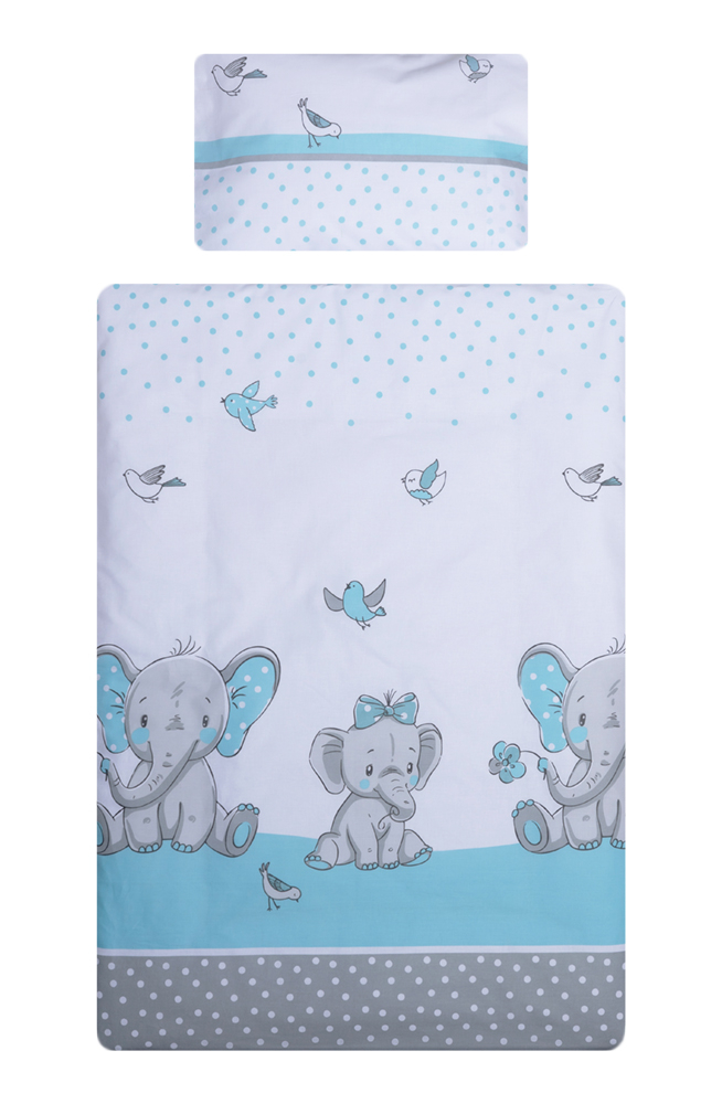 Set lenjerie bumbac 5 piese pentru saltea de 120 x 60 cm, Elefant&Birds Blue, Beberoyal, LJ-005-103
