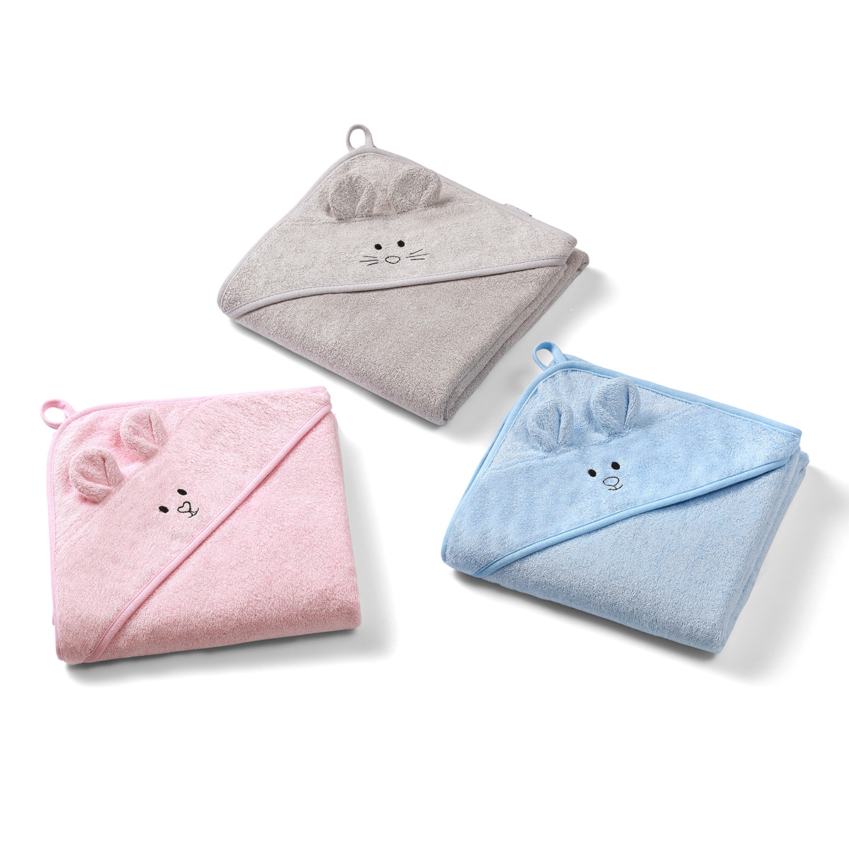 Prosop baie bambus cu gluga 100 x 100 cm Babyono albastru 1553/02